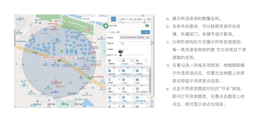 可視化應(yīng)急資源動(dòng)態(tài)管理——利用地理信息可視化技術(shù)實(shí)現(xiàn)對(duì)區(qū)域范圍及周邊救援物資裝備、救援隊(duì)伍、醫(yī)療設(shè)施、工程搶險(xiǎn)、交通運(yùn)輸、后勤等相關(guān)聯(lián)動(dòng)單位信息的管理,建立應(yīng)急資源管理系統(tǒng),提供應(yīng)急資源信息錄入、修改、查詢、統(tǒng)計(jì)等基本功能,并實(shí)現(xiàn)對(duì)其可視化管理功能。對(duì)于應(yīng)急救援資源信息的管理實(shí)現(xiàn)應(yīng)急資源信息“平時(shí)記得準(zhǔn)、戰(zhàn)時(shí)調(diào)得到”的管理模式。