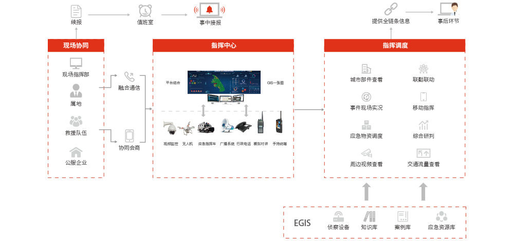 應(yīng)用大數(shù)據(jù)分析、機(jī)器學(xué)習(xí)、案例推演等技術(shù),建立資源需求分析模型,面向各類事故災(zāi)害類型智能化提供資源調(diào)度建議。利用有線、無線、衛(wèi)星等多種通信手段,實(shí)現(xiàn)指揮調(diào)度信息的一鍵快速分發(fā)、應(yīng)急資源跟蹤定位、任務(wù)跟蹤反饋等功能,支持短信、語音、視頻等多路并發(fā),強(qiáng)化前后方指揮調(diào)度通信保障和任務(wù)全過程可視化管理,通過GIS一張圖進(jìn)行統(tǒng)一展現(xiàn),包括資源需求分析、一鍵調(diào)度、現(xiàn)場(chǎng)指揮調(diào)度、城市部件查詢、敏感位置告警、區(qū)域視頻監(jiān)控調(diào)用、現(xiàn)場(chǎng)各種融合通訊設(shè)備、任務(wù)跟蹤反饋、事件時(shí)間軸等功能。