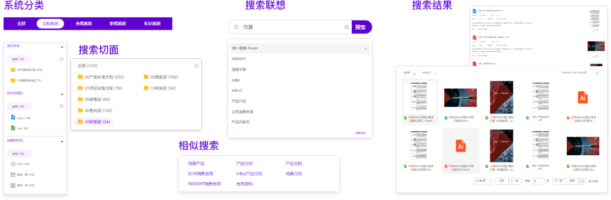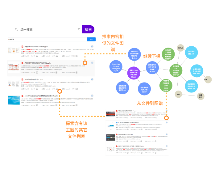 鴻翼INSIGHT統(tǒng)一智能搜索提供圖譜探索式的文檔搜索和基于知識(shí)圖譜的語(yǔ)義搜索。