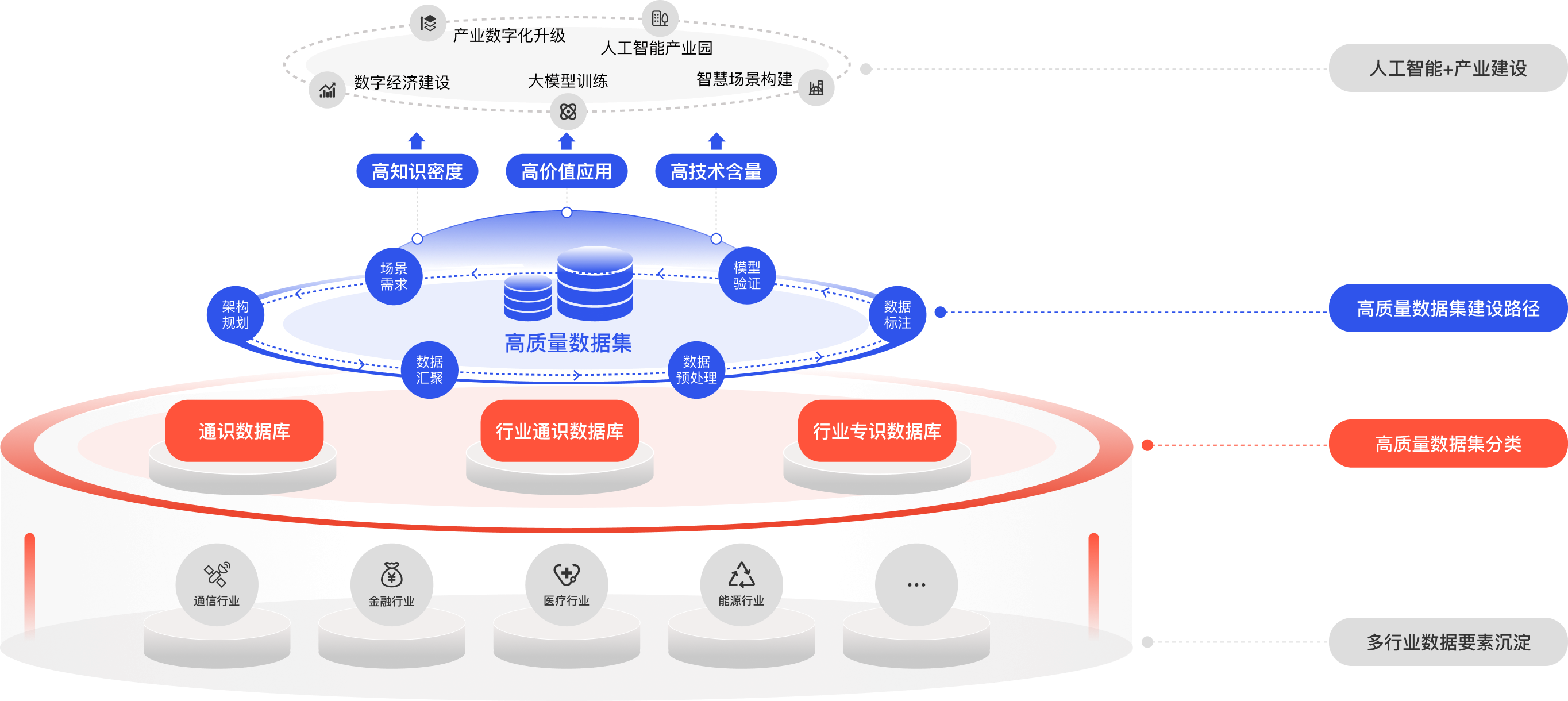 面向政務(wù)、金融、能源、交通、醫(yī)療等重點領(lǐng)域,提供定制化數(shù)據(jù)集開發(fā)服務(wù),構(gòu)建覆蓋通識、行業(yè)通識及行業(yè)專識的全層級高質(zhì)量數(shù)據(jù)集體系