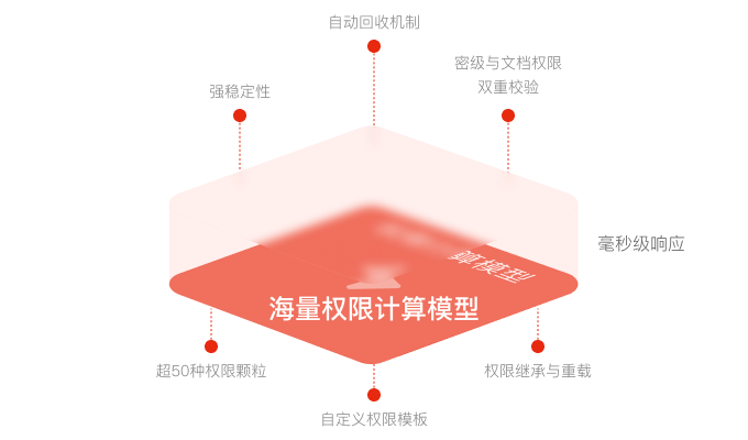 擁有超50種的細(xì)顆粒度權(quán)限,支持依據(jù)業(yè)務(wù)類型自定義權(quán)限模板;基于權(quán)限極速計(jì)算模型,能夠?qū)崿F(xiàn)海量權(quán)限毫秒級(jí)響應(yīng),權(quán)限可繼承,可重載,可回收,支持與密級(jí)疊加校驗(yàn),進(jìn)一步提升管控能力。