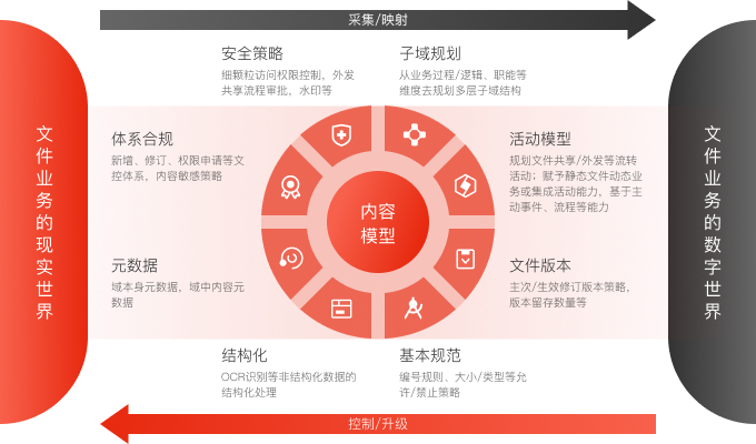 ECM非結(jié)構(gòu)化數(shù)據(jù)中臺(tái)提供標(biāo)準(zhǔn)接口服務(wù)、文檔組件服務(wù)、文檔處理服務(wù)、數(shù)據(jù)交換服務(wù)、內(nèi)容智能服務(wù)、內(nèi)容場(chǎng)景服務(wù)等全內(nèi)容服務(wù)能力,挖掘企業(yè)內(nèi)容潛能,實(shí)現(xiàn)企業(yè)數(shù)據(jù)價(jià)值。
